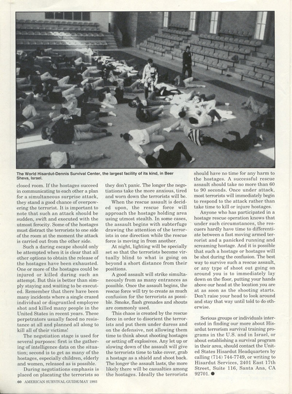"Hisardut: Counter-Terrorism Training." American Survival Guide May 1993 Volume 15 Number 5: 56 - 60.